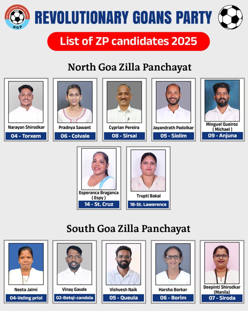 आरजपीन बिरेस्तारा सकाळीं उमेदवारांची वळेरी जारी करून उत्तर गोंयांत सात आनी दक्षीण गोंयात पांच उमेदवार जाहीर केलें.