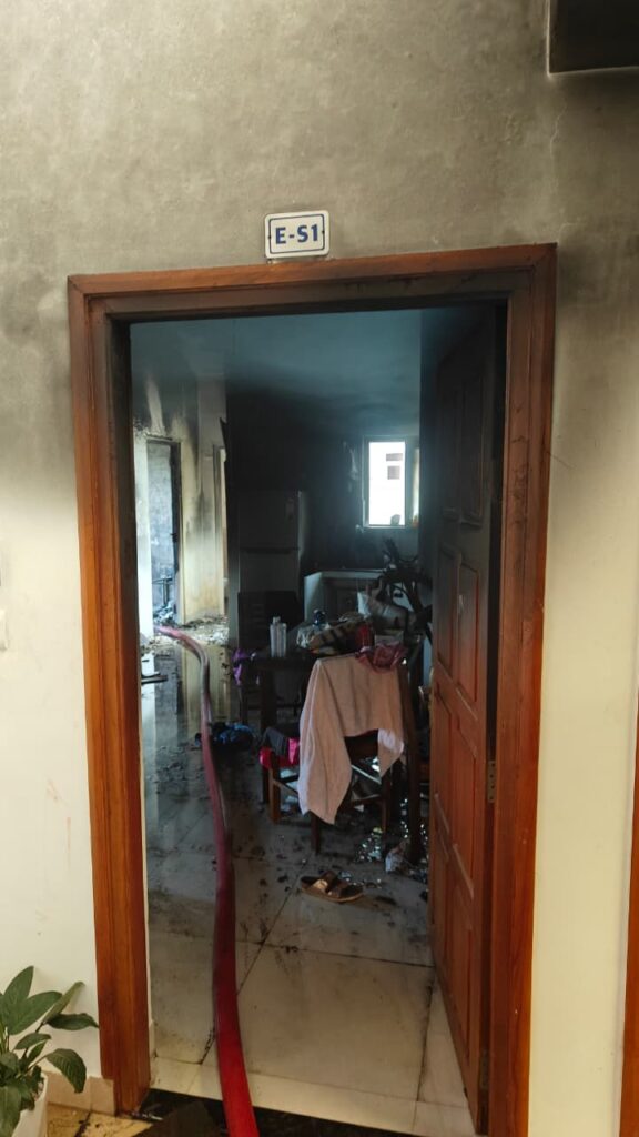 उजो लागलो ते वेळार दोनूय चलयो कुडींत न्हिदिल्ली. सादूर शेजाऱ्यांनी दोनूय चलयांक सुरक्षीतपणान फ्लॅटांतल्यान भायर काडल्यो. ह्या वेळार एका थळाव्या नागरिकाकूय किरकोळ दुखापत जाल्या. दोनूय जखमी चलयांक म्हापशें जिल्हो हॉस्पिटलांत उपचारा खातीर व्हेल्यात.